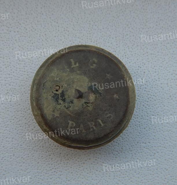Пуговица оловянная гусарская нижних чинов. Была залита гипсом и закрыта сзади оловянной крышечкой (которая развалилась при выемке из земли). Найдена на эполетке давно.
