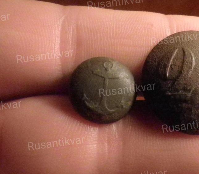 Ничем не примечательная пуговица . Самого распространенного типа среди русских пуговиц периода Крымской войны ( все-таки в Севастополе находились и активно воевали - 29, 30,31,32,33,34,35,36,37,38, 39-й флотские экипажи, 40-й и 41-й (оба частично), 42-й флотский экипаж, 43-й флотский экипаж (частично), 44-й и 45-й флотские экипажи ) .