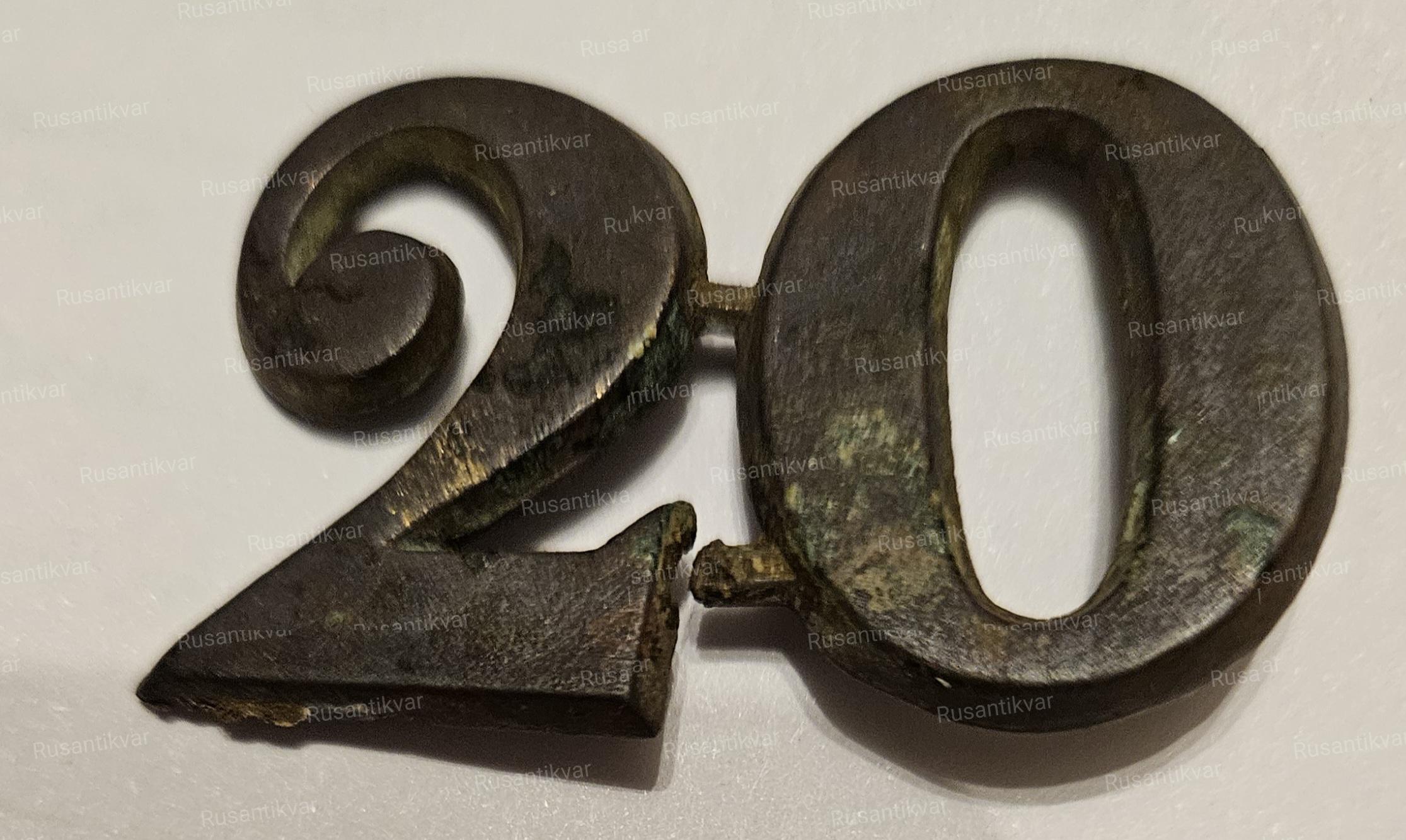 Пуговица нижнего чина 20-го пехотного полка, 1830-1855.