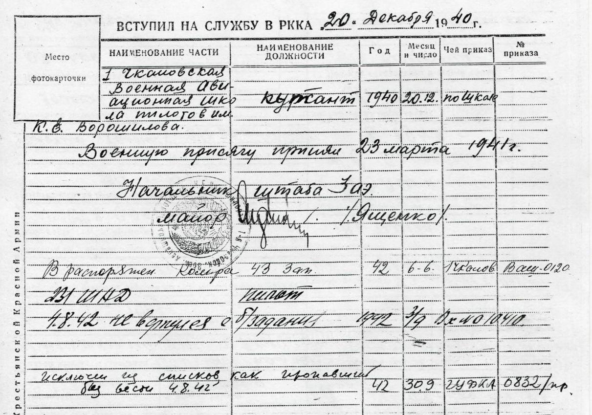 По созданной нами за предыдущие годы базе данных потерь самолетов и моторов, мы быстро нашли упоминание о нём в делах на списание матчасти. Согласно Приказу 1-й ВА №34 от 6 сентября 1942, самолет Ил-2 № 1870615 с мотором № ш282347 списан за август месяц 289-й ШАП (со ссылкой на Приказ №069 231 ШАД).
