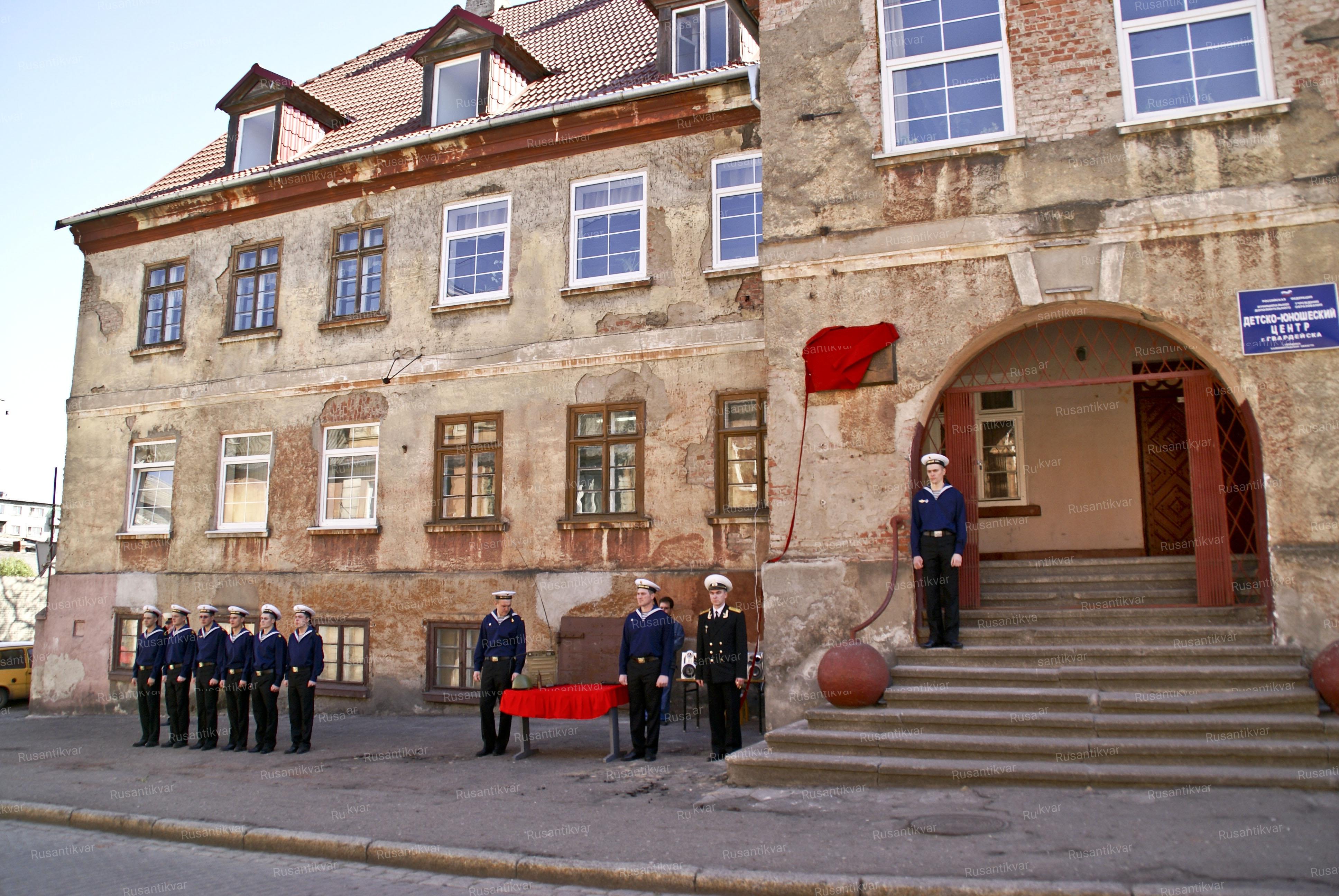 4.Открытие мемориальной плиты на здании Детско-юношеского центра в г. Гвардейске радистке группы «Клён» Анне Анисимовой.