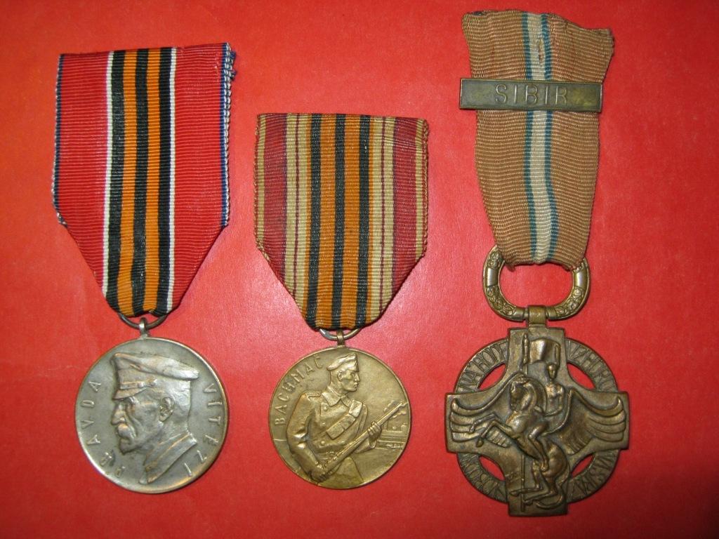 Революционный чешский крест, для участников в России были с планками Сибирь, Зборов, Бахмач и с номерами полков. Две медали памятные учережденные уже в ЧССР, к 30-летней дате формирования полков в России в городе Зборов и Бахмач, города находяться сейчас на территории Украины.