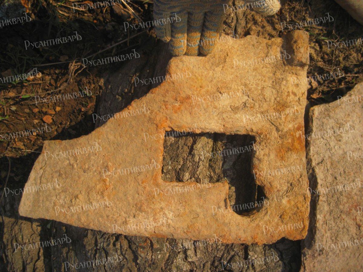 39. У основания дуба на высоте 234,3 в верхнем правом углу, за клином затвора стоит фрагмент правой части ствольной коробки 37-мм зенитного орудия с пробоиной от 5-см немецкого танкового бронебойного снаряда. Фото автора.
