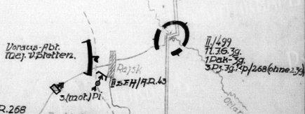 Выполняя эту задачу, дивизия силами двух усиленных пехотных полков должна была атаковать вдоль линии Малеши – Райск – Рыболы. На правом фланге пошёл 499-й пехотный полк полковника Грайнера, а на левом – 468-й пехотный полк полковника Киттеля . Перед полками должен был пройти передовой отряд дивизии майора фон Штеттена, состоящий из 268-го разведывательного батальона, первой батареи 268-й противотанкового дивизиона, первой роты 268-го саперного батальона, взвода штурмовых орудий StuG III из 203-й дивизиона штурмовых орудий , взвода из 6-й батареи 46-го зенитного полка и радиостанции средней дальности с персоналом. Для разведки маршрута майор фон Штеттен организовал моторизованный передовой отряд из двух штурмовых орудий, двух зенитных орудий малого калибра, противотанкового взвода, отряда станковых пулеметов и рации с персоналом .