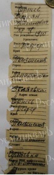 3. Бланк медальона красноармейца-сапера Ерняева Касьяна Тигаловича.