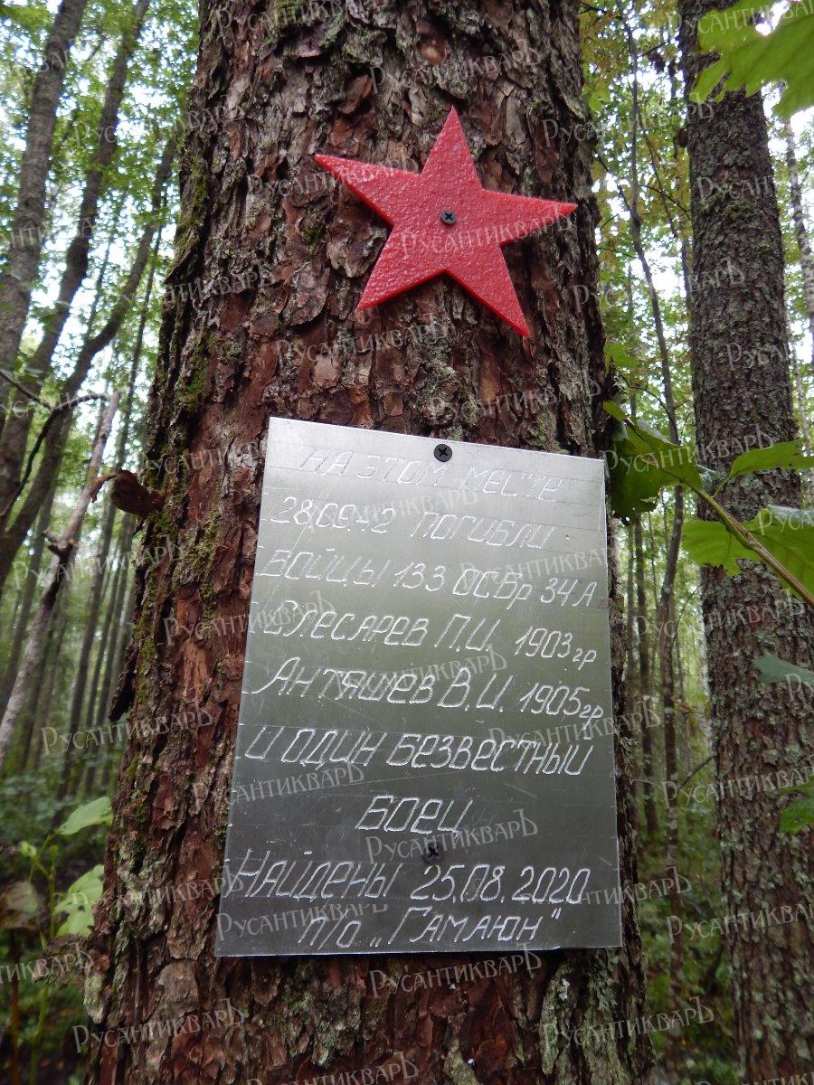 По итогам в раскопе были эксгумированы останки трёх бойцов РККА и фрагменты костных останков ещё двух. Оба бойца по донесениям погибли 28 сентября 1942 года. Оба воевали в составе 133-й ОСБр. Антяшов был записан убитым и похороненным северо-восточнее д. Выдерка Лычковского района, Слесарев числился пропавшим без вести там же.