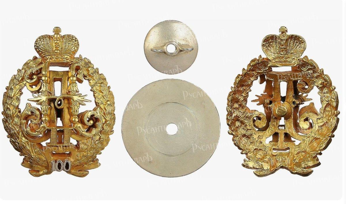 Утверждён 7 декабря 1898 года к юбилею училища. Представлял собой соединённые вензеля императоров Павла I и Николая II, окружённые венком из дубовых и лавровых листьев. Внизу на банте — серебряное число «100».
