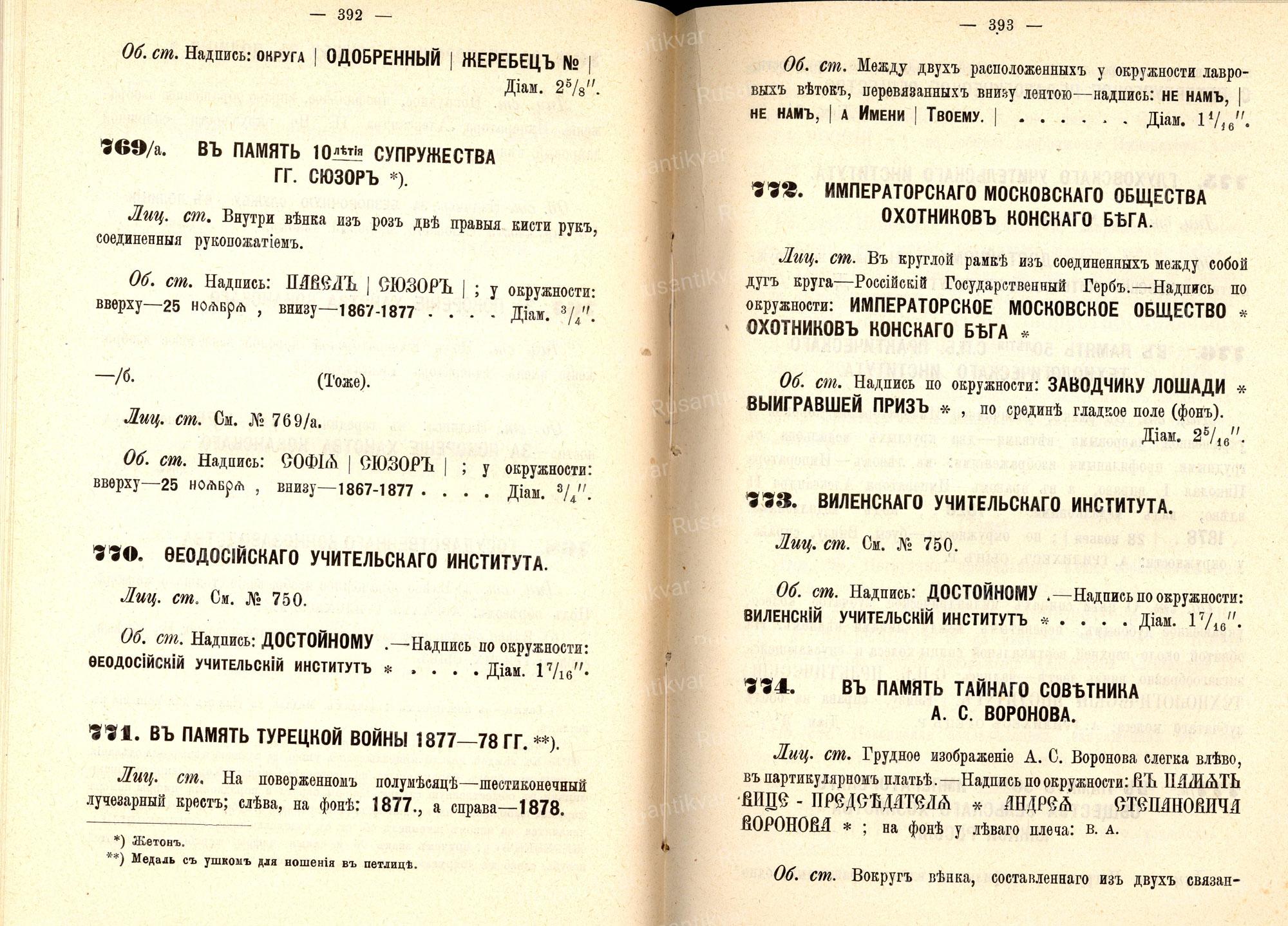 Скан из книги Смирнов В.П. "Описание русских медалей, отчеканенных на Санкт-Петербургском Монетном Дворе в царствование Императора Александра I". СПб., 1911 г.