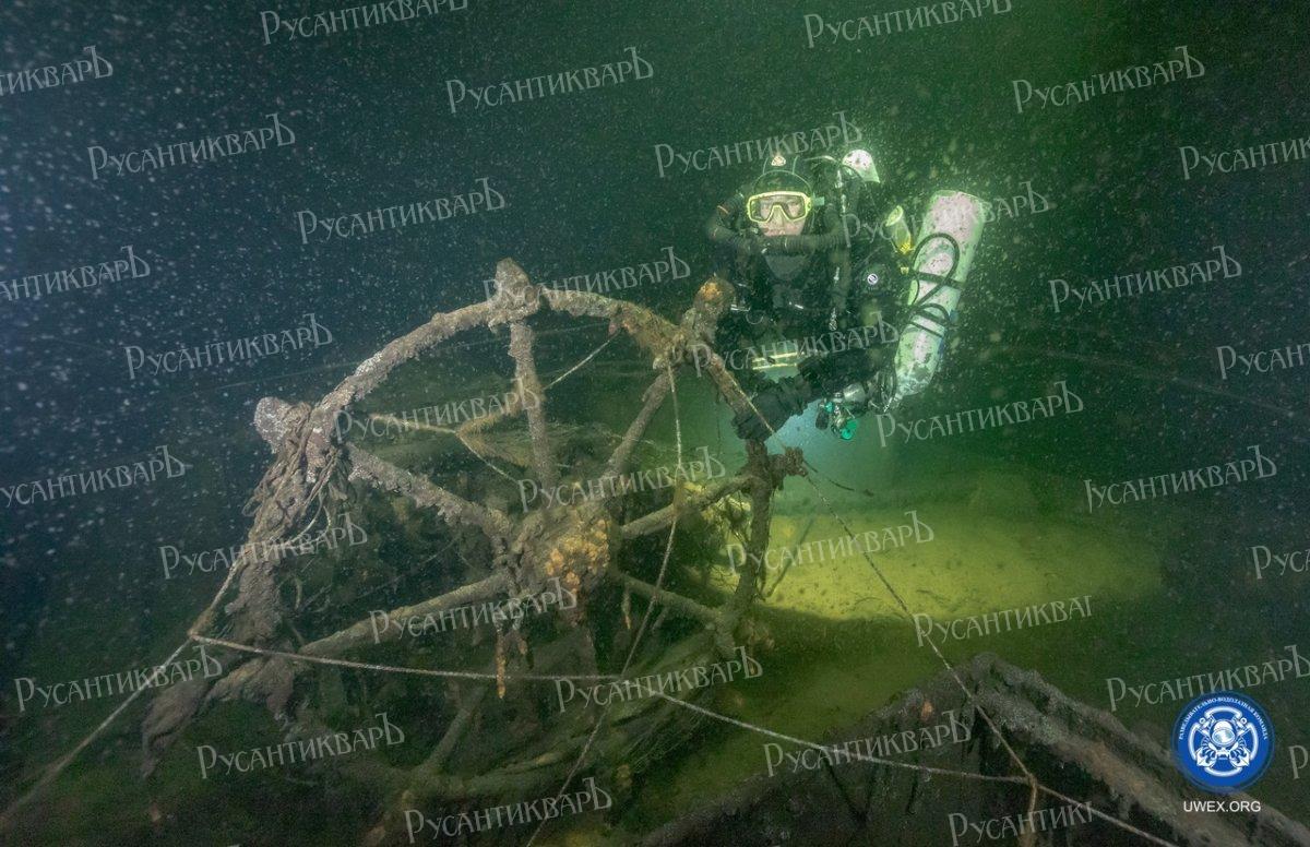 19. Штурвал парохода «Эверита», останки которого обнаружены на глубине 106 метров. Фото: «Разведывательно-водолазная команда».