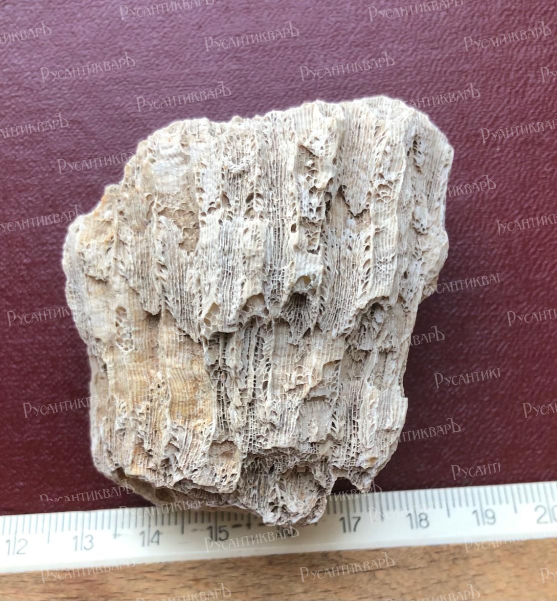 Кремень,один край отполирован. Губка Хететес (лат. Chaetetes) — род палеозойско-мезозойских губок (по учебнику Бондаренко, Михайловой — девонско-пермских склероспонгий).