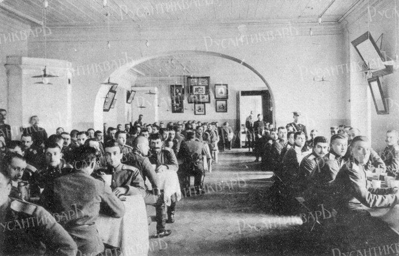 В военных училищах питание юнкеров всегда было хорошим. Вот как выглядел дневной рацион питомцев Михайловского артиллерийского училища: «На столе стояло по два чайника со сладким чаем… На двух тарелках свежие булочки или кренделя из лучшей кондитерской Филиппова, калачи, сайки с маком, солью, были с вареньем… На завтрак обычно давали одно мясное блюдо, чай, булочки. Иногда макароны с сыром, которые юнкера любили. Обед был из двух блюд: суп или борщ с пирогом. Зимой давали с кислой капустой борщ со снетками (мелкая рыбешка). Мясное блюдо (мяса порядочный кусок) со вкусным соусом. Давали часто оленину (вкусное мясо) с брусничным вареньем. Иногда - медвежатину. Повара готовили очень вкусно. Пирожные (от Филиппова). Чай. В праздничные дни - иногда птицу, дичь. В 8 часов - ужин: холодное мясо или колбаса, хлеб, чай» . Порции были большими, к чаю подавались пирожки и булочки, по праздникам в кондитерских на заказ готовились пирожные - огромные и очень вкусные . В Павловском училище стол был «вкусным и обильным», хотя и более простым: меню составляли сами юнкера, в большинстве своем не отличавшиеся привередливостью. Котлеты, считавшиеся деликатесом, и пельмени можно было заказать поварам за особую плату. По праздникам юнкеров поили кофе с молоком и шоколадом .