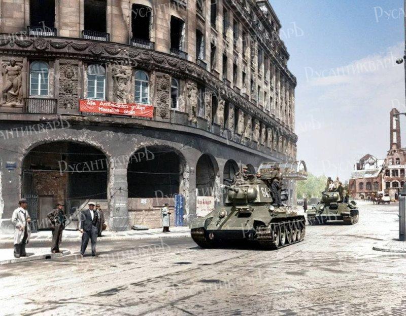 А следом за ними на брусчатку московских улиц вышли поливальные машины. Их не было там с самого начала войны, а теперь помывка улиц стала символическим жестом, показывающим, что с фашисткой заразой покончено навсегда.