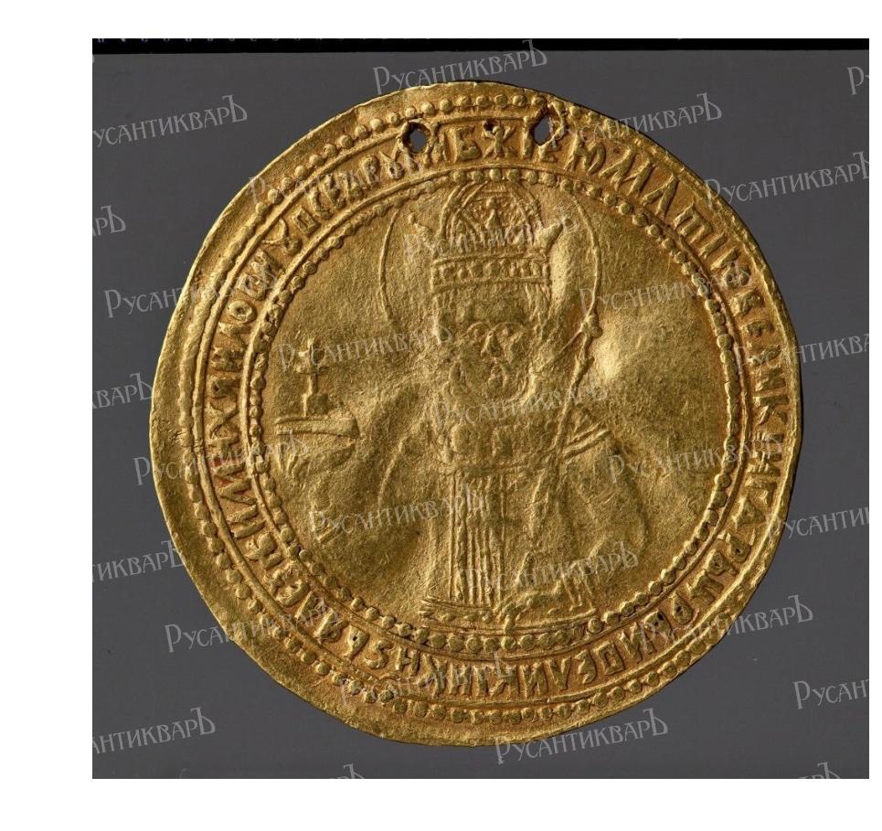 Жалованный золотой в один угорский за Крымский поход 1687 г.Совместное правление Ивана,Петра,Софьи 1687-1689 гг.Вес 3.51 гр.Музеи Московского Кремля.