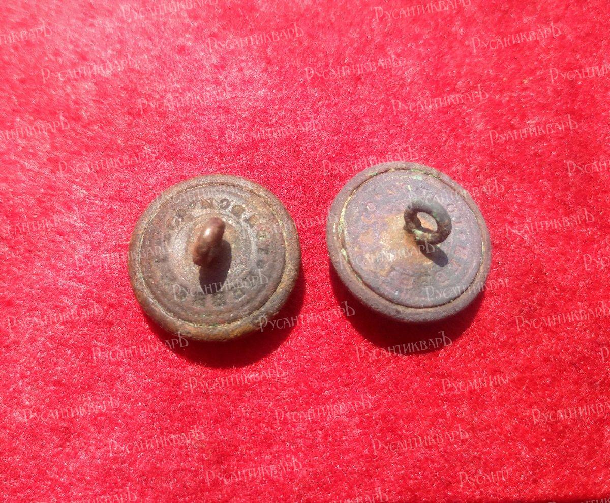 Малые оловянные пуговицы разного исполнения - одна плоская, вторая выпуклая