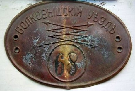 Должностные знаки служащих телеграфной стражи: Волковысского уезда и Пултусского уезда.
