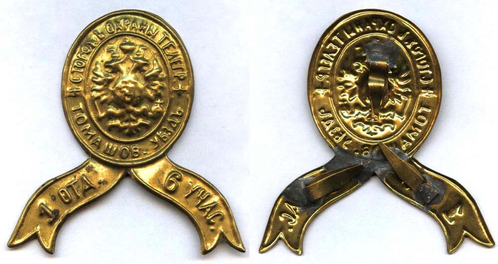 Должностной знак-лента на головной убор; Стражник; Носильщик; Лесной сторож; Лесник; Сторож охраны телеграфа Томашовского уезда; Лесной сторож Акционерного общества Мальцевских заводов.