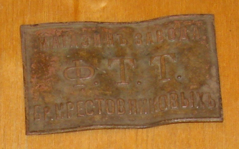 Надпись - "Магазинъ завода Ф.Т.Т. бр. Крестовниковых"