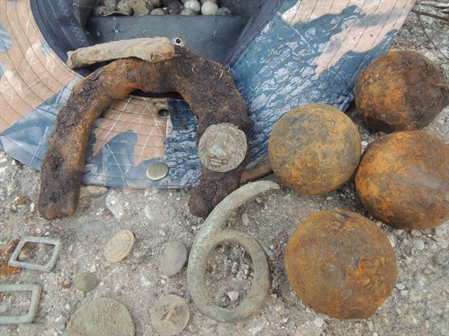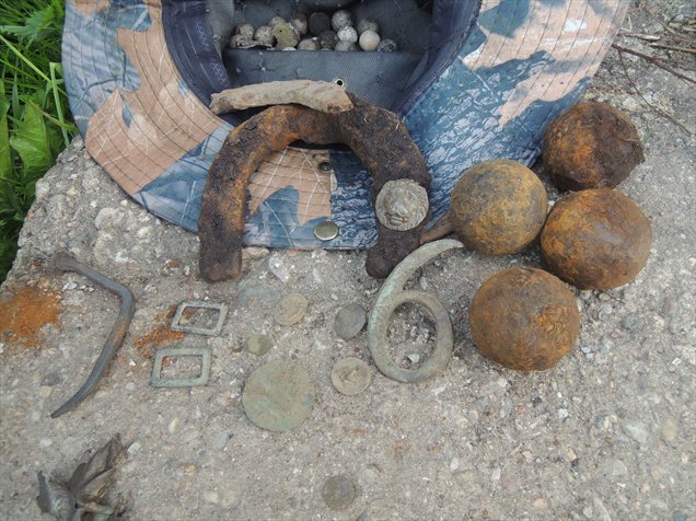 Словом еще горка ядер, лев и цифра, пожалуй все... сигналов больше не было четких, а еще были пуговки, часть кирасы, подковы да пожалуй и все... нам как то надоело, и мы уехали, но местные друзья обещали вернуться. Будим ждать их результата, я сегодня слышал что ЕСТЬ!!!??? :shock: