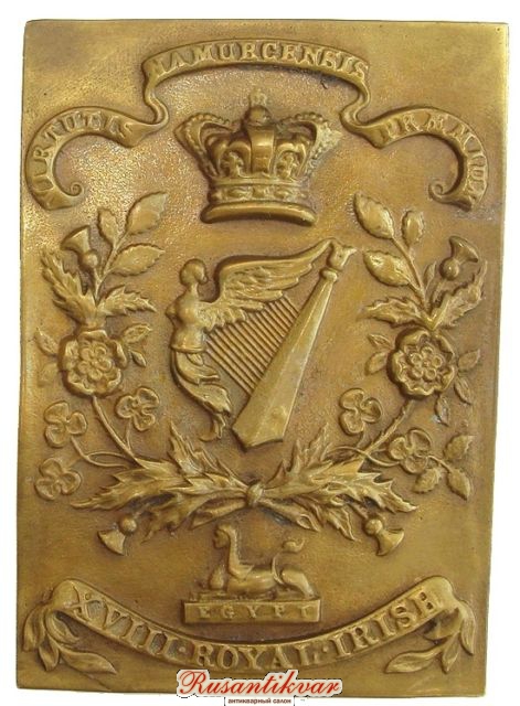 Полковой знак с плечевых ремней нижних чинов 18-го Королевского Ирландского полка . Образца до 1844 ? года - 1855 года . ( фото из интернета ).