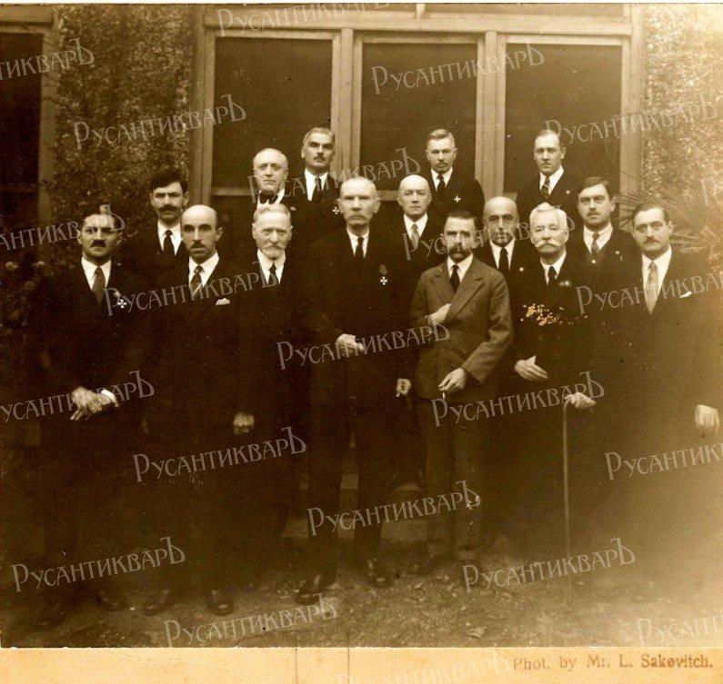 Праздник Союза георгиевских кавалеров. Шанхай, 1933 г. В первом ряду слева направо: подполковник Сейфулин Леонид Владимирович, генерал-майор Соколов Николай Михайлович, генерал-майор Гафнер Леонид Альфонсович, генерал-лейтенант Жуков Гервасий Петрович, генерал-лейтенант Дитерихс Михаил Константинович, генерал-майор Зимин Василий Васильевич, генерал-майор Адамович Лев Михайлович; во втором ряду: генерал-майор Сахаров Константин Вячеславович, полковник Боровиков Владимир Гаврилович, неизвестный, контр-адмирал М.И. Федорович, капитан 1-го ранга Н.Ю. Фомин; в третьем ряду: полковник Клуге Константин Иванович, полковник Сперанский Александр Николаевич, капитан Федуленко Валентин Васильевич.