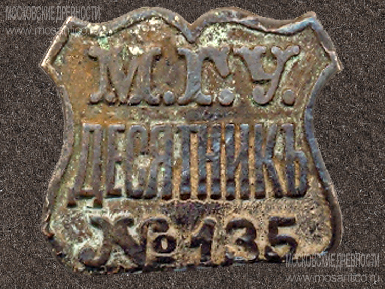 Поясная бляха служащего Московской городской управы; Должностной знак; Десятник Московской городской управы; Служебный знак служащего Московского торгового союза; Должностной знак; Десятник Московской городской управы; Должностной знак служащего Московского губернского земства.