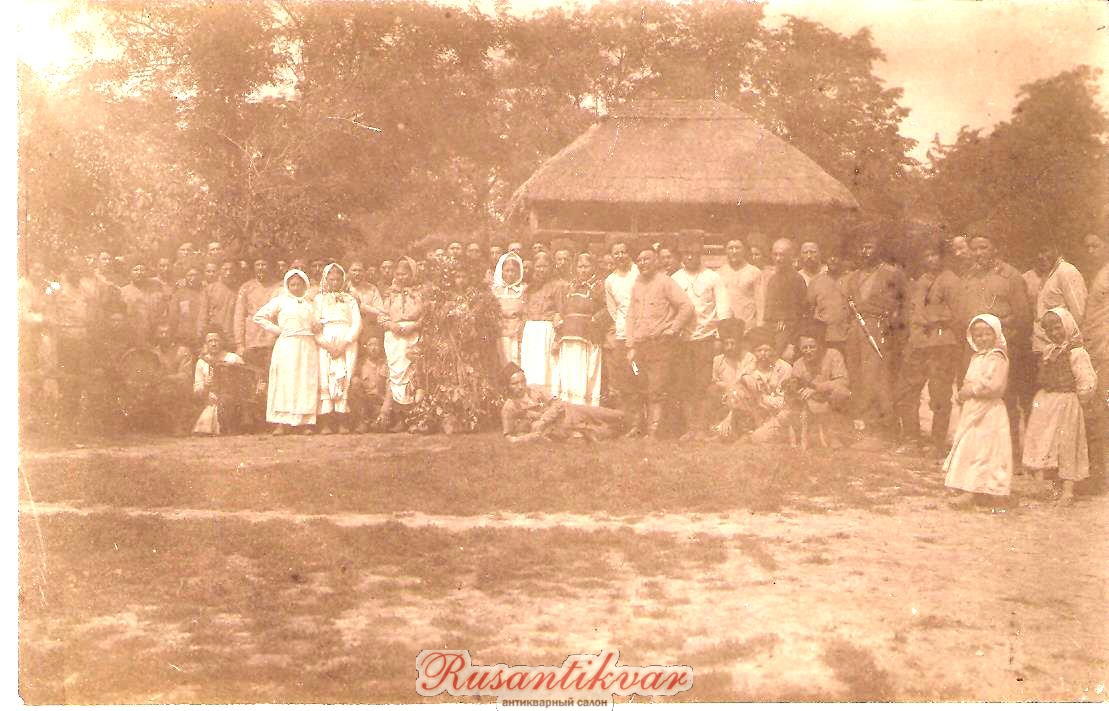Пластуны 6 пластунского батальона.Над дверью табличка с надписью: "№7 Батальонный лазарет.Отдел. 6-го Пл.бат.