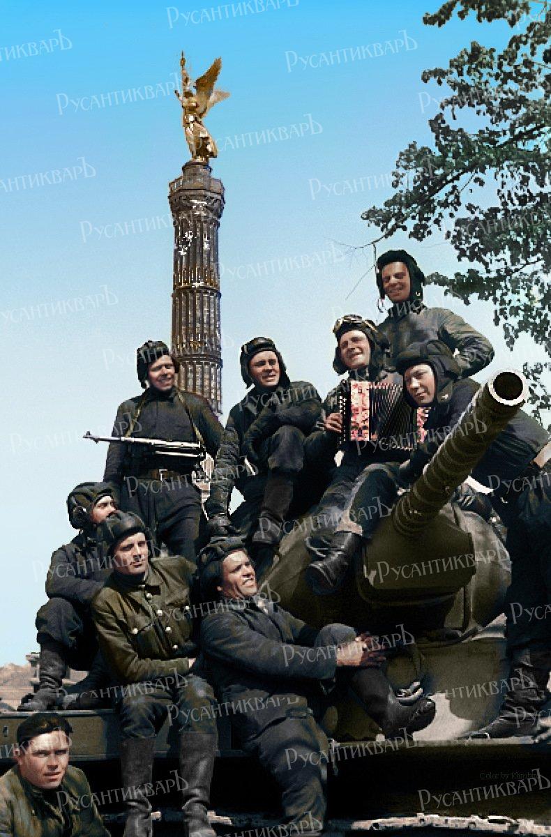 Бойцы и командиры 7-го гвардейского танкового корпуса в Берлине 1945 года.