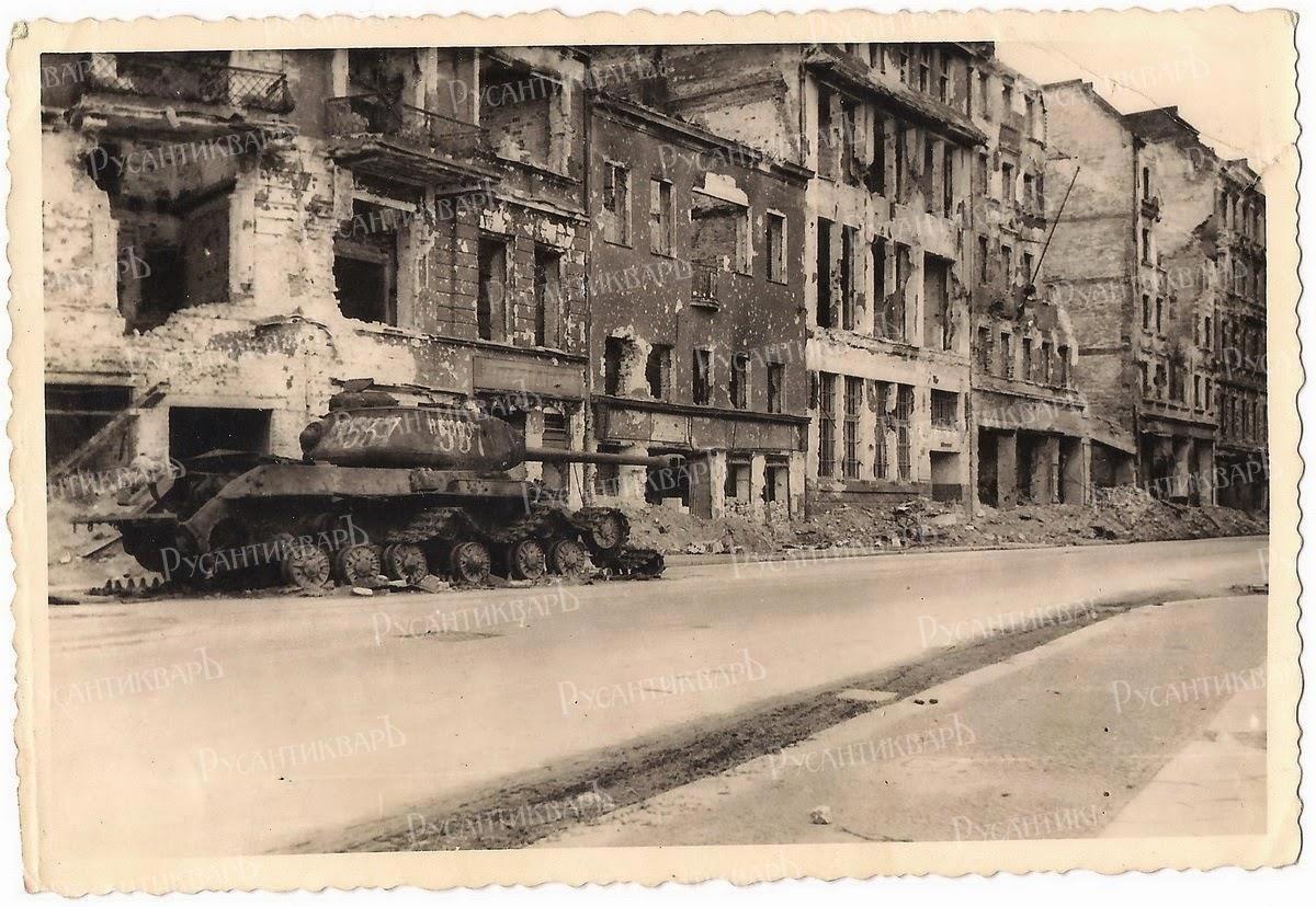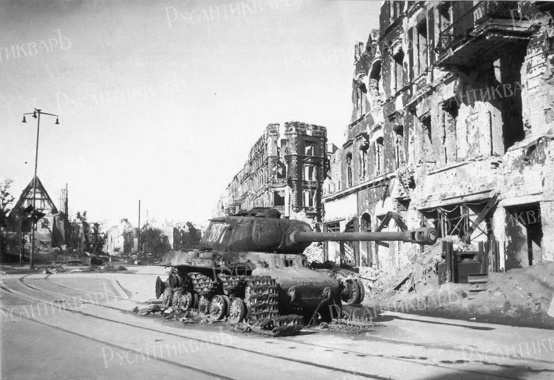 Советский танк ИС-2 №537 лейтенанта Б.И. Дегтярева подбитый у Штригауер-плац (Striegauer Platz) в немецком городе Бреслау.Автор Кристина Гораздовска.