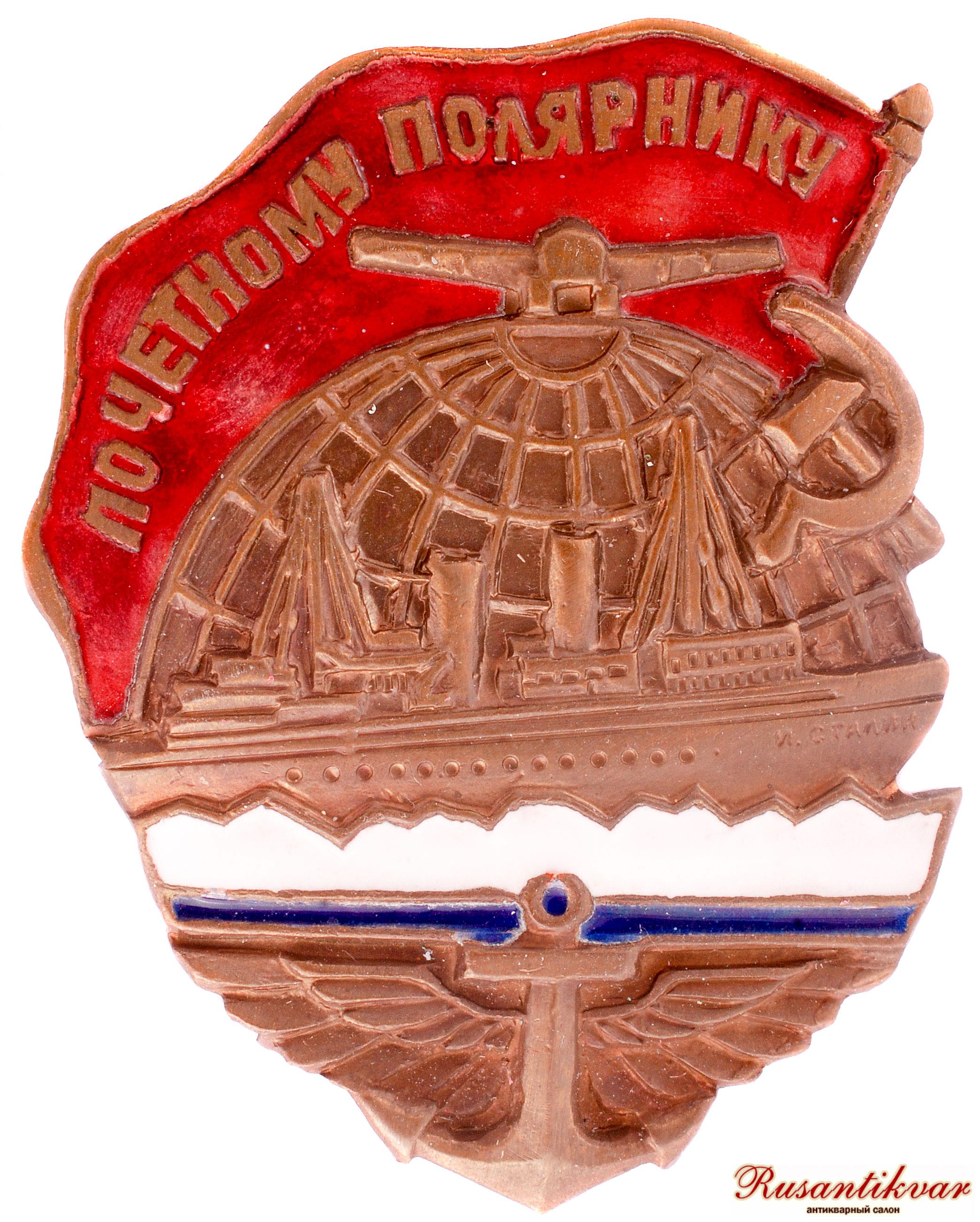 Железо, бронзирование, эмаль. 12 февраля 1926 г. вымпелы судов Черноморско-Азовского, Балтийского, Северного и Каспийского пароходств и флаг Добровольного флота были отменены в связи с созданием акционерного общества «Совторгфлот» и был утвержден единый вымпел Совторгфлота — красное треугольное полотнище с эмблемой «серп и молот». 30 января 1931 г. был образован Наркомат водного транспорта, а 9 апреля 1939 г. был образован Наркомат Морского флота. При этом вымпел был сохранен. В 1930-е гг. этот вымпел также стали носить на рукавах, соответственно правый и левый. Представленные вымпелы — левые. В декабре 1932 г. Постановлением Совнаркома СССР было образовано Главное управление Северного морского пути, а 7 марта 1934 г. был утвержден вымпел судов Главного управления Северного морского пути. Известны значки, выполненные в виде вымпелов, которые носились на кокарде головного убора и на рукавах, соответственно, левый и правый.