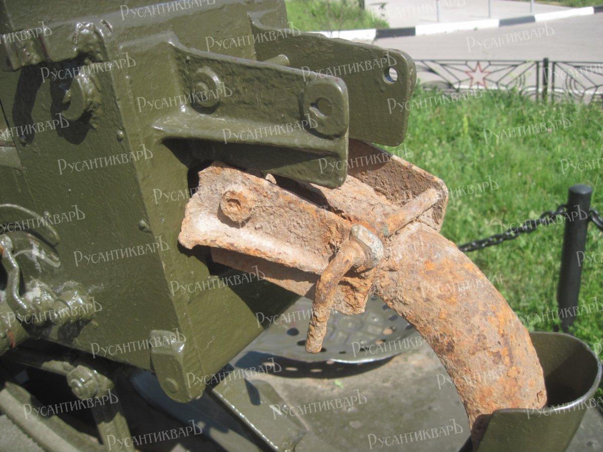 40. Фрагмент правой части ствольной коробки 37-мм зенитного орудия с пробоиной от 5-см немецкого танкового бронебойного снаряда. Фото автора.