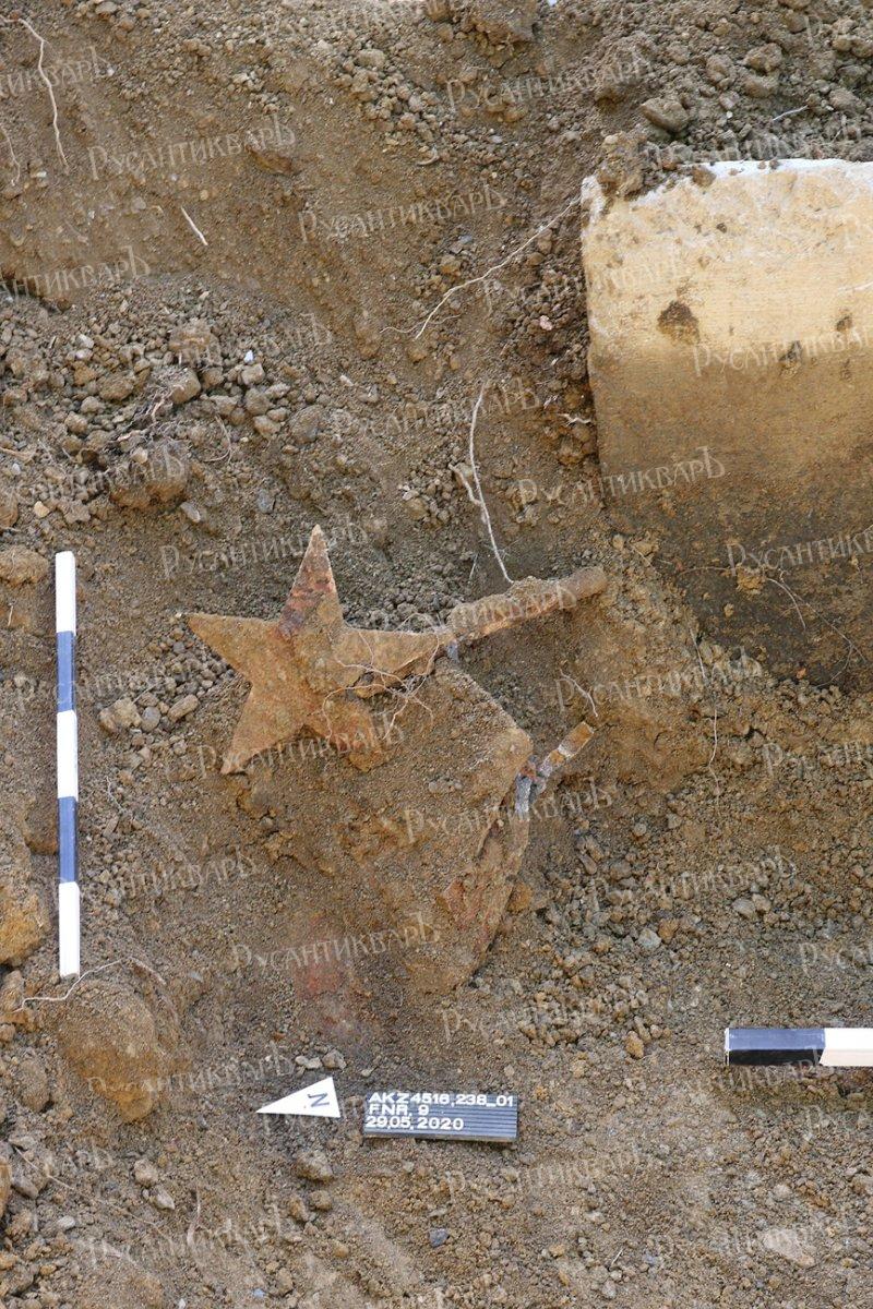 Металлическая звезда, украшавшая когда-то монумент, была найдена рядом.
