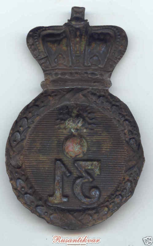 Пуговица с мундира офицера 31-го пехотного (большая), 1830-1855