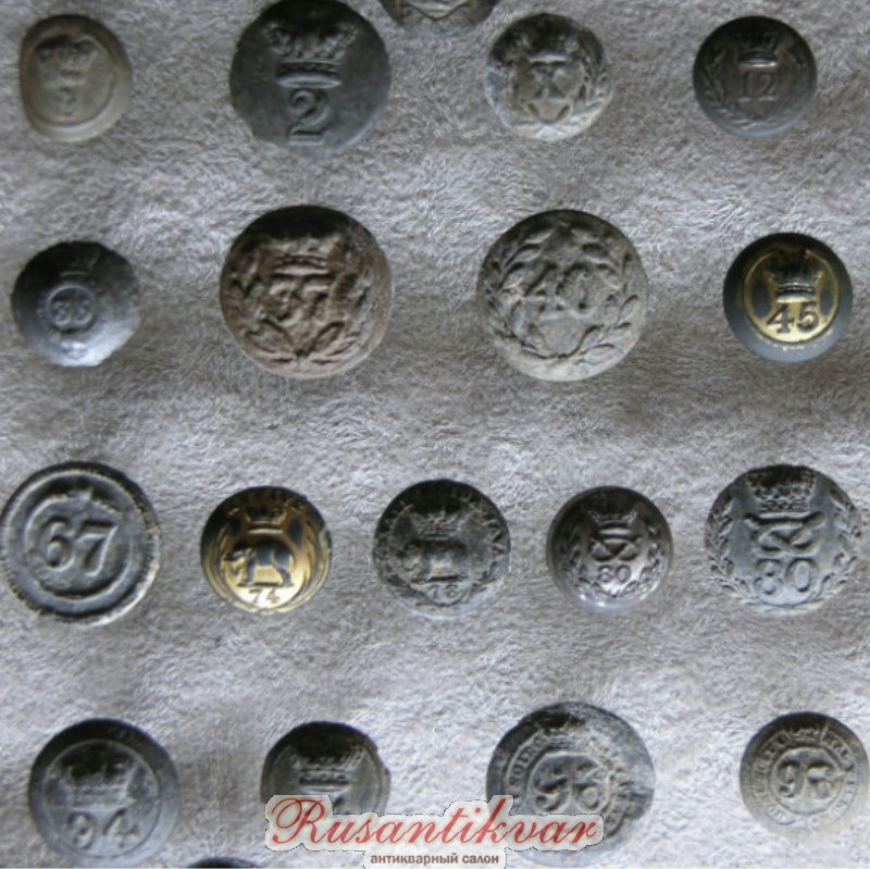 Пуговицы пехотных полков, официально не принимавших участия в Крымской войне, найденных в Севастополе, из коллекции музея Шереметьевых.