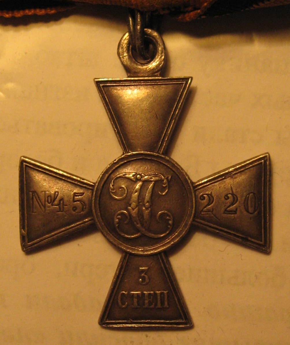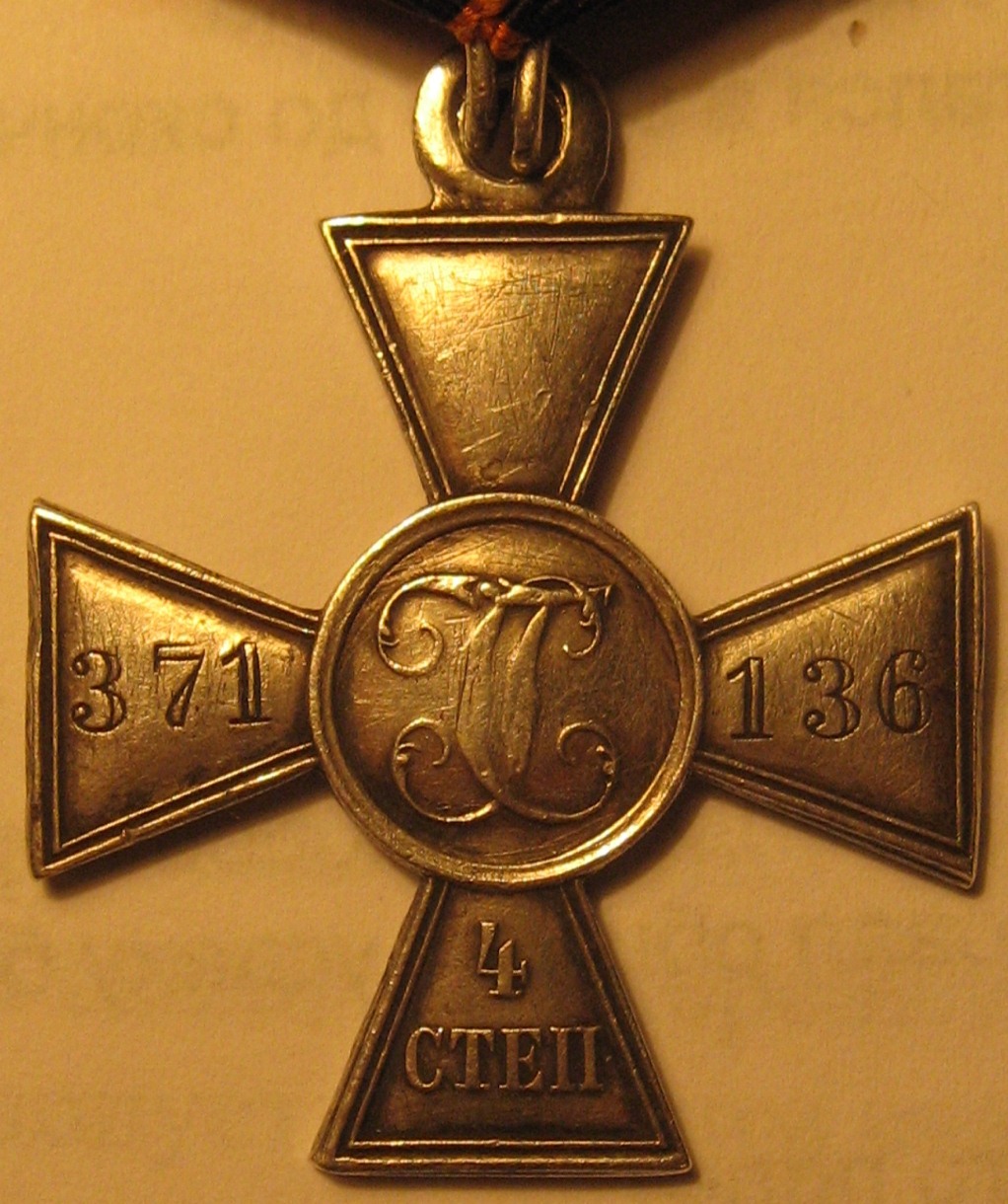 4 степ.№ 371136.Награждён приказный Кубанского казачьего конного отряда особого назначения.Михаил Шевченко."1 ноября 1917 г. когда левая колонна Отряда спешившись принуждена была выбивать курдов,засевших на скалистом перевале,что к югу от сел Сенгисефид,Баенкух преграждавших ей путь к этим селениям,примером отличной храбростю,увлекая товарищей первый взашёл на перевал и бросившись преследовать начавших отступать курдов отбил у них 8 вьюков с провиантом и заколол 3 вооружённых погонщиков.ст 67.п.4 Георгиевского статута".Приказ февраля 1918 г.по корпусу ген.Баратова.