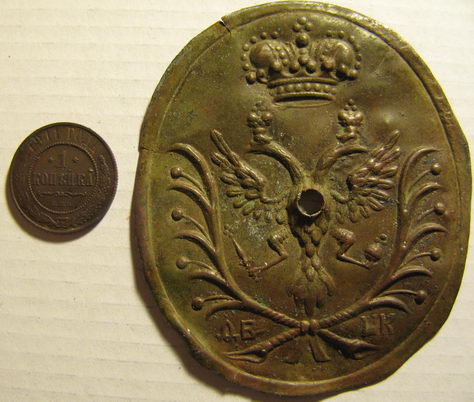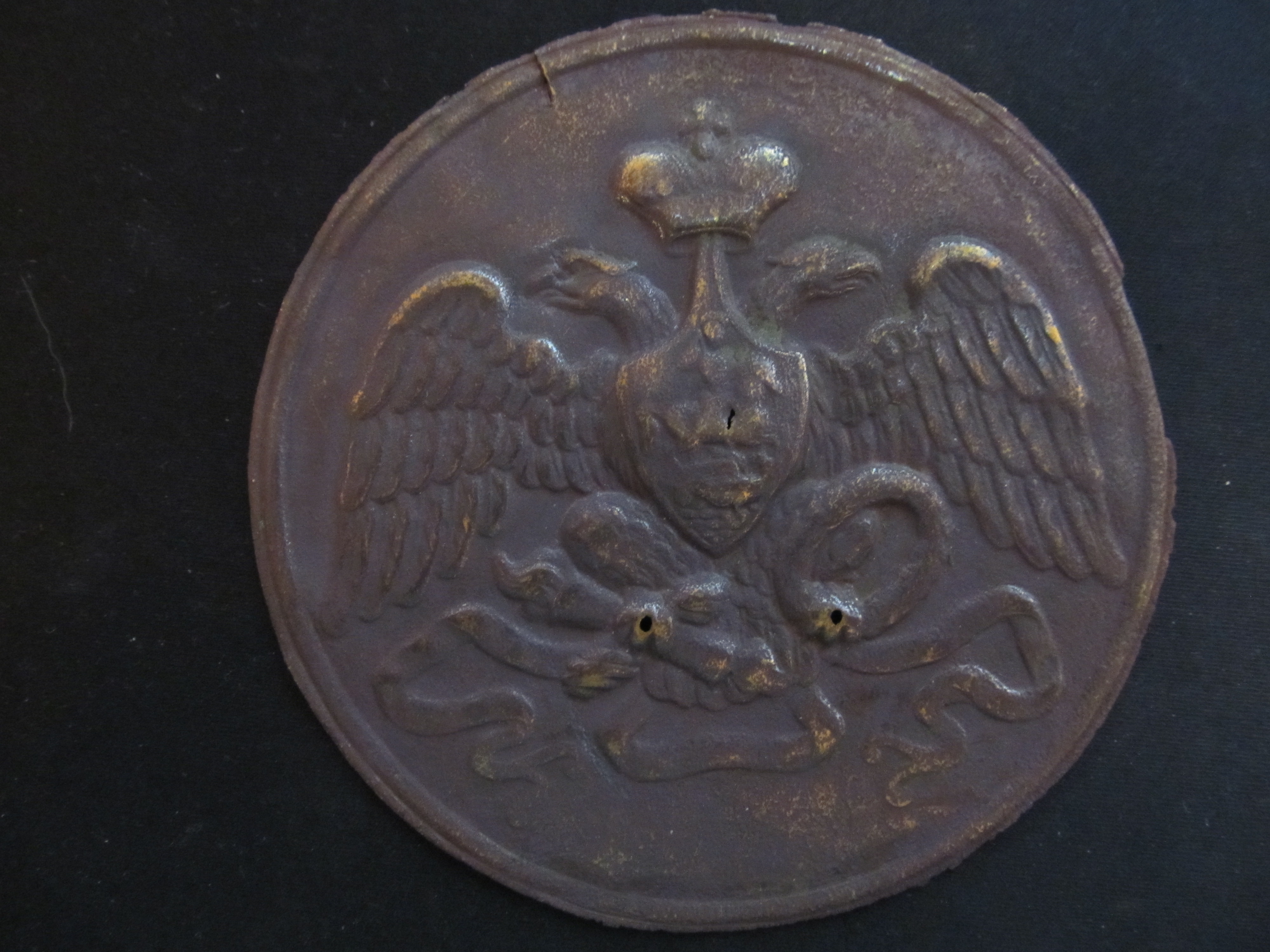 Бляха на Гвардейскую патронную суму, обр.1808 года. Диаметр бляхи 12 см.