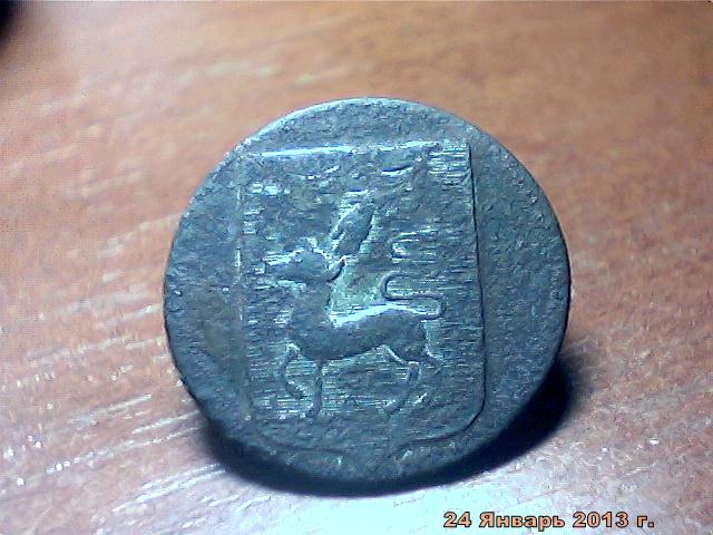 Попалась пуговка на начало 19-го века,остатки посеребрения ,сюжет герба необычный - животное похожее на козлика или какую ещё парнокопытную тварь и рука в облаках.Кто специализируется на гербах городов подскажите что за город ?